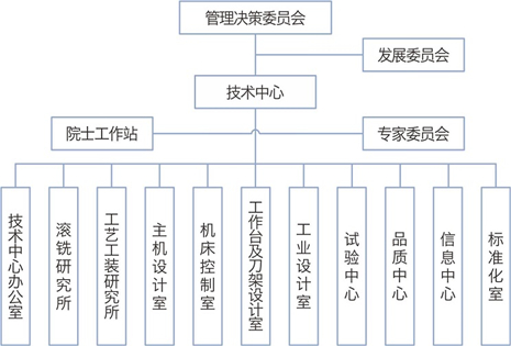 建立了管理決策委員會、發(fā)展委員會、技術(shù)中心、中心辦公室及專家委員會、專業(yè)研究室(院士工作站、滾銑研究所、工藝工裝研究所、主機設(shè)計室、機床控制室、工作臺及刀架設(shè)計室、工業(yè)設(shè)計室、標(biāo)準(zhǔn)化室、試驗中心、品質(zhì)中心、信息中心)、職能部門、生產(chǎn)部門責(zé)任明確的科技管理體系;建立了技術(shù)例會制度,及時解決科研工作中存在的問題,有力地推動了公司科技創(chuàng)新工作有序、高效運行。