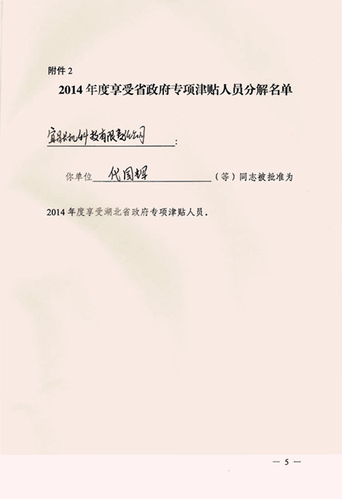 宜昌長機(jī)科技公司代國輝同志被批準(zhǔn)為2014年度享受湖北省政府津貼人員