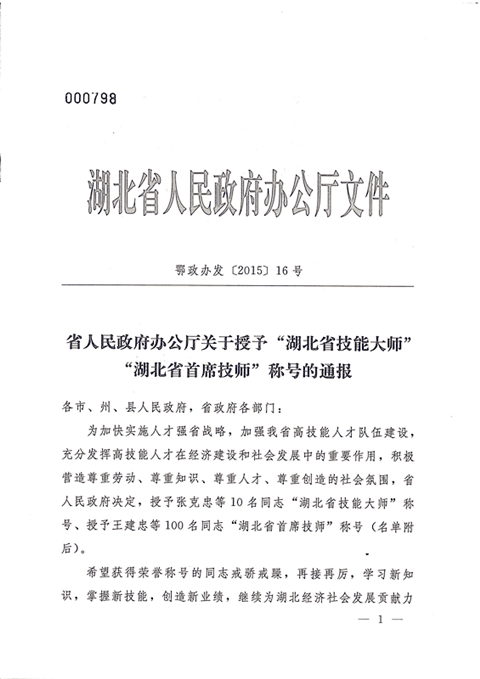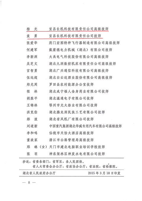 熱烈祝賀宜昌長機(jī)科技公司楊光、袁勇同志獲湖北省首席技師榮譽(yù)稱號