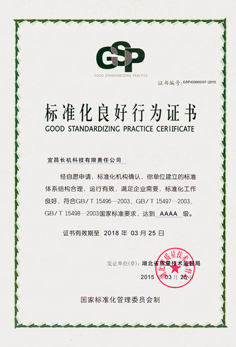宜昌長機(jī)科技公司榮獲”標(biāo)準(zhǔn)化良好行為“證書