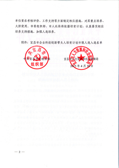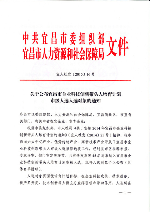 宜昌長(zhǎng)機(jī)科技胡天明、王維被納入宜昌市企業(yè)科技創(chuàng)新帶頭人培育計(jì)劃市級(jí)人選入選對(duì)象