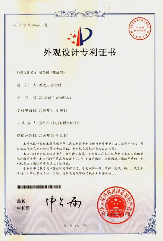 公司“一種新型斜齒插齒機(jī)構(gòu)”獲實(shí)用新型專利、“插齒機(jī)(集成型)”獲外觀設(shè)計(jì)專利,按公司規(guī)定,獎(jiǎng)勵(lì)喬凌云同志2000元以資鼓勵(lì)。