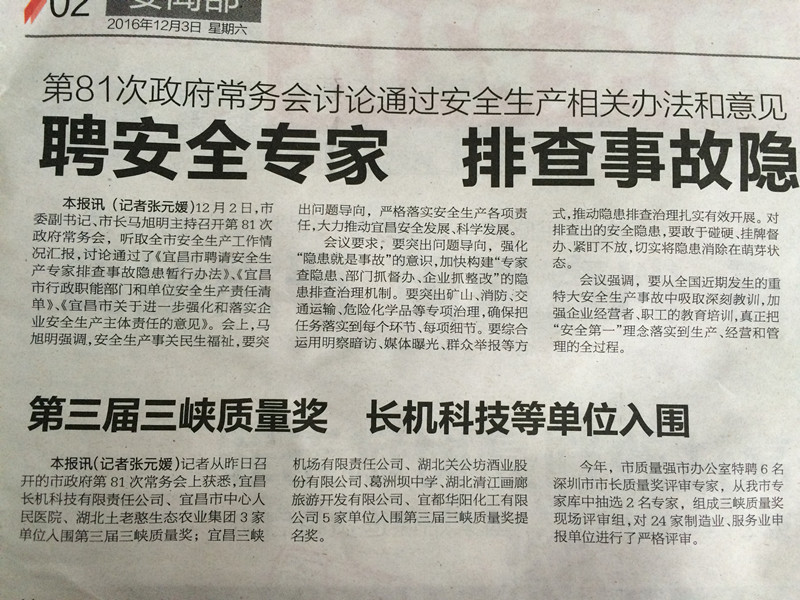 宜昌長機科技有限責任公司入圍第三屆三峽質量獎。