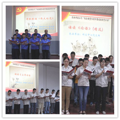 接下來(lái)進(jìn)入到了朗誦環(huán)節(jié),制造中心一黨支部、二黨支部帶來(lái)了詩(shī)歌朗誦《偉大的黨》、供銷(xiāo)中心黨支部朗讀了習(xí)主席在5月14日“一帶一路”國(guó)際合作高峰論壇開(kāi)幕式上發(fā)表的主旨演講《攜手推進(jìn)“一帶一路”建設(shè)》(節(jié)選),研發(fā)中心黨支部全體黨員朗誦了經(jīng)典《論語(yǔ)》精選。