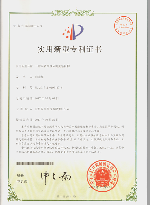 公司“一種插齒機(jī)刀架體前后擺動(dòng)導(dǎo)向機(jī)構(gòu)”榮獲發(fā)明專利,“一種旋轉(zhuǎn)分度后的夾緊機(jī)構(gòu)”、“一種直線運(yùn)動(dòng)夾緊機(jī)構(gòu)”、 “ 一種用于軸類零件定位可調(diào)的機(jī)構(gòu)”等榮獲實(shí)用新型專利。