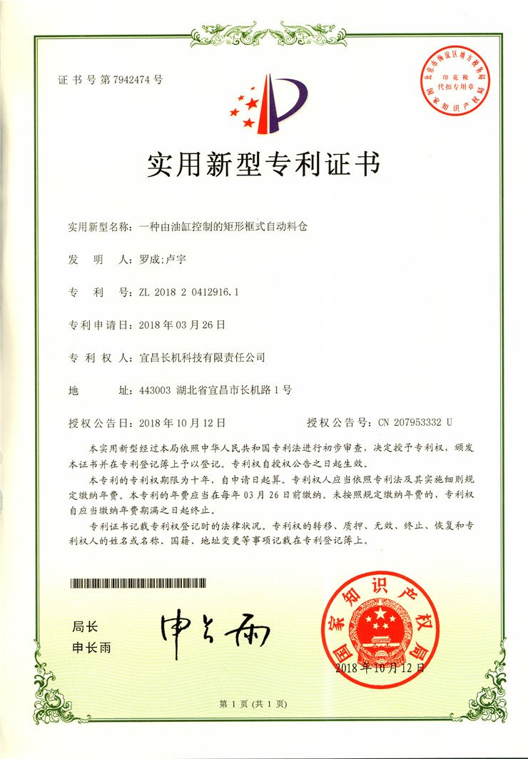 公司“插齒機讓刀系統(tǒng)”、“一種插內(nèi)斜齒輪的專用機床”、“一種由油缸控制的矩形框式自動料倉”榮獲實用新型專利。