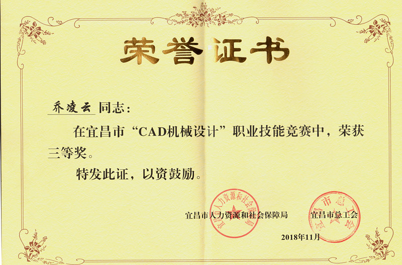 喬凌云榮獲市職業(yè)技能競(jìng)賽(CAD機(jī)械設(shè)計(jì))三等獎(jiǎng)