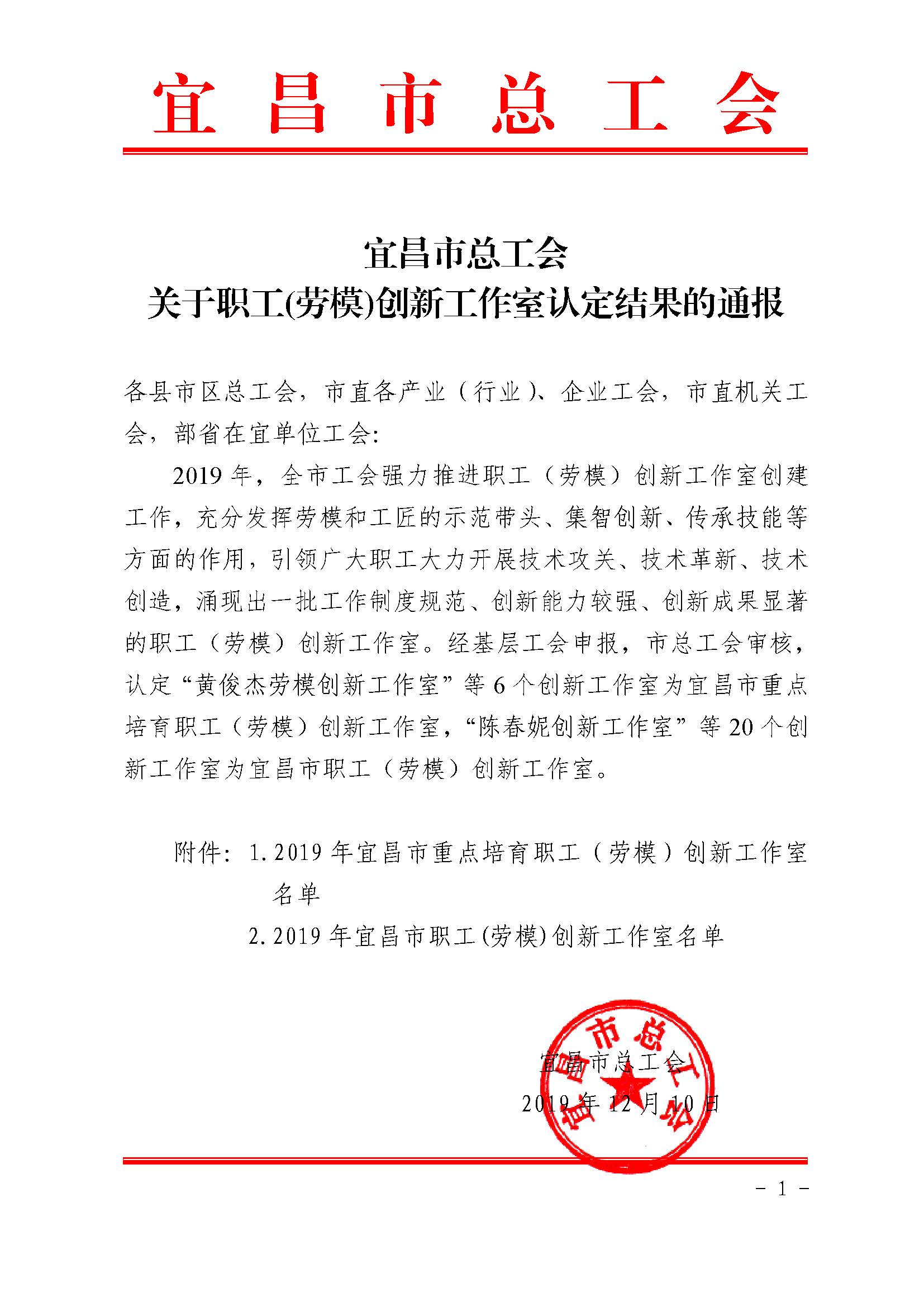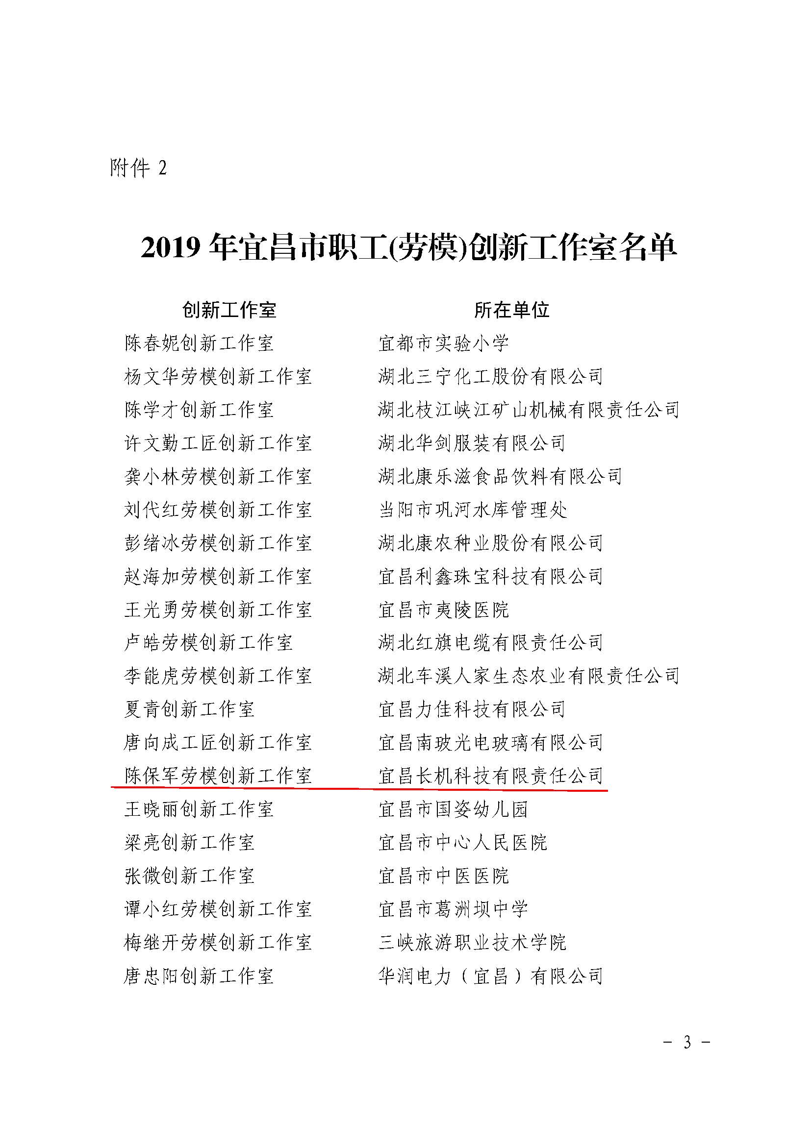 陳保軍勞模創(chuàng)新工作室被認定為“宜昌市職工(勞模)創(chuàng)新工作室”