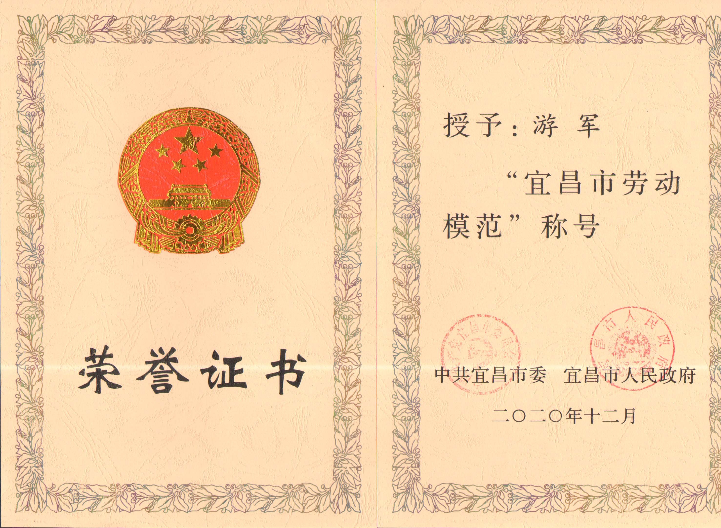 游軍被授予“宜昌市勞動(dòng)模范”稱號