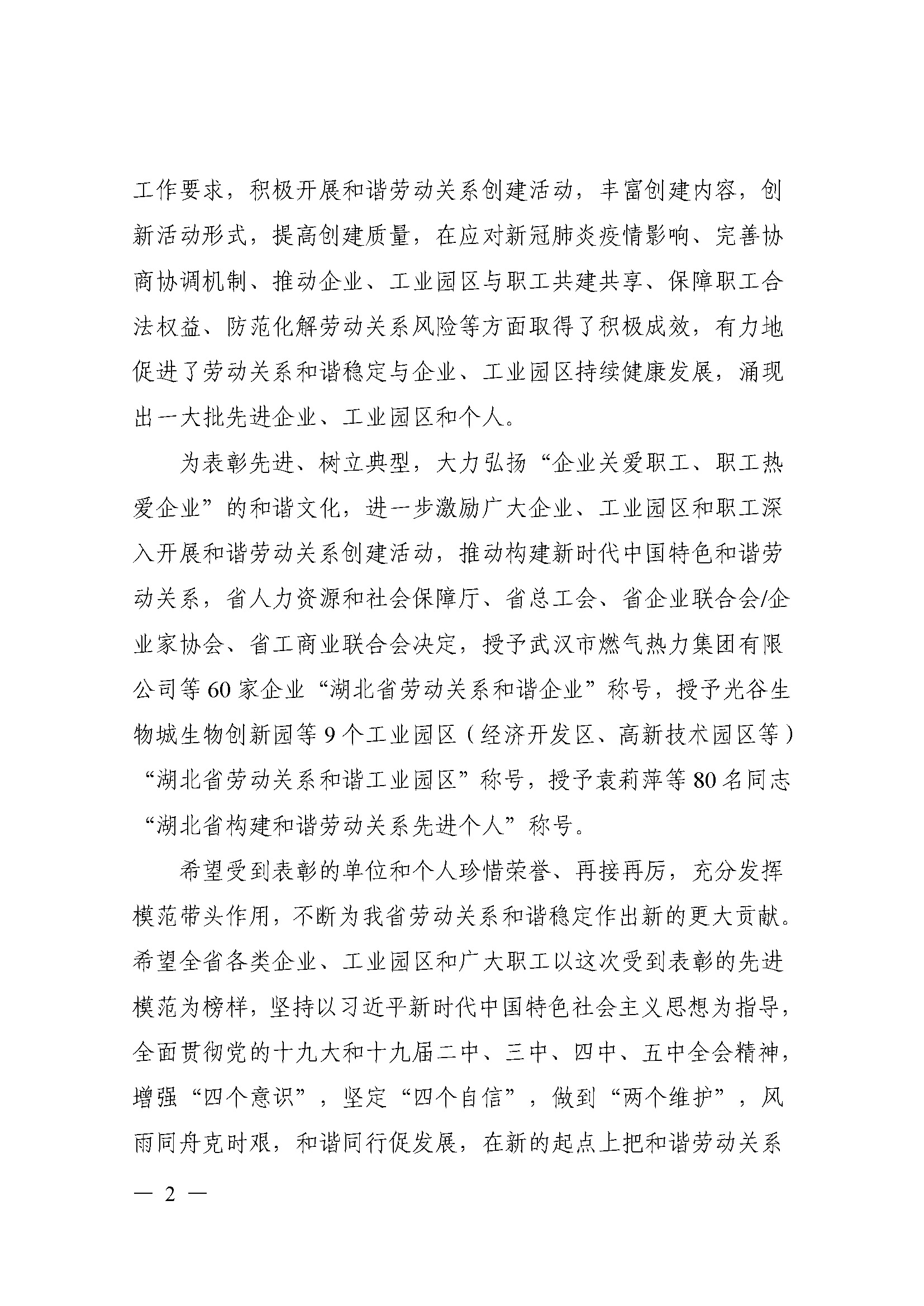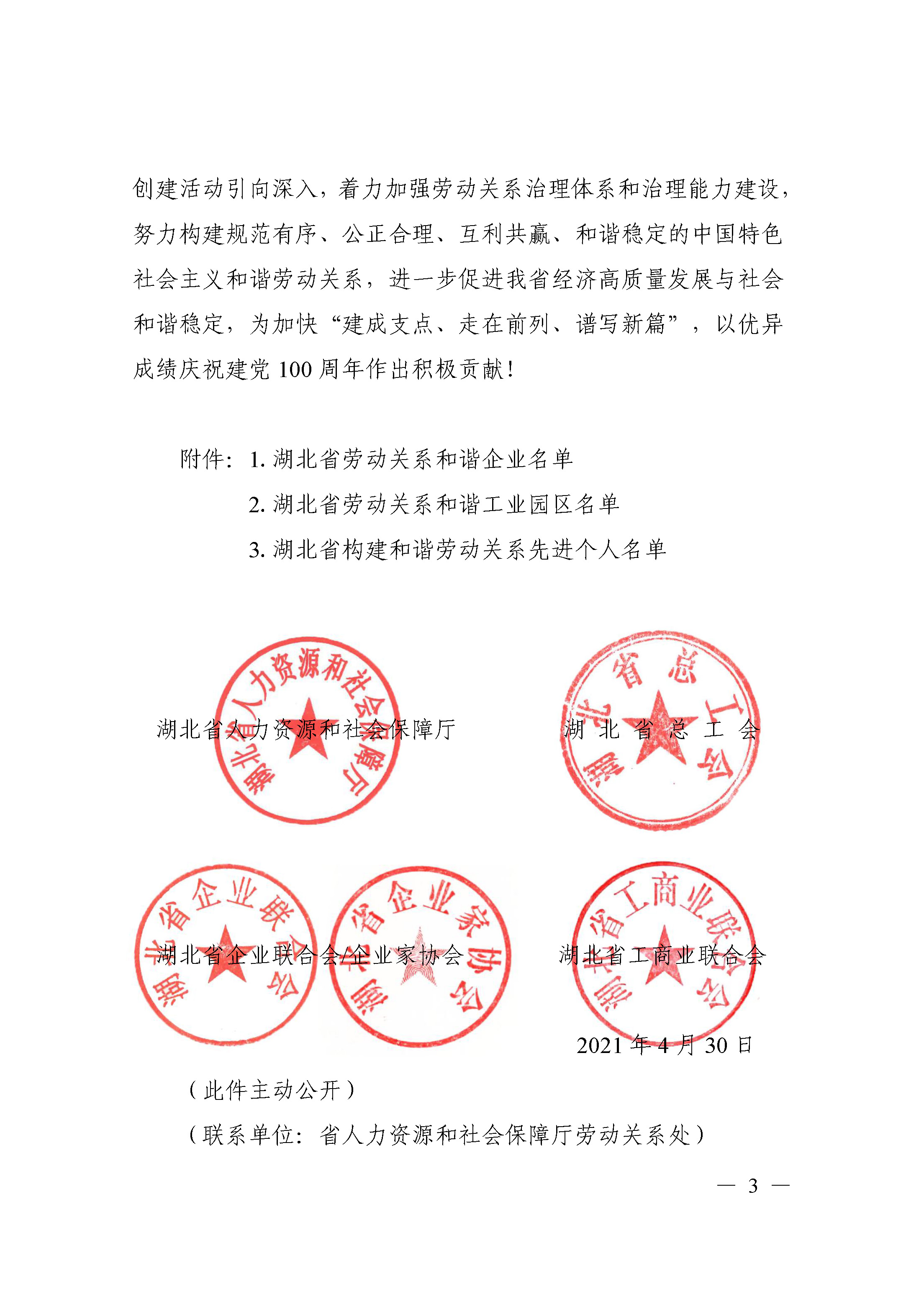 我公司被評為湖北省勞動關(guān)系和諧企業(yè)