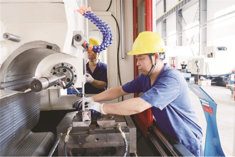 7月8日,宜昌長(zhǎng)機(jī)科技有限責(zé)任公司生產(chǎn)車(chē)間,技術(shù)人員正忙著完成一批數(shù)控設(shè)備調(diào)試安裝。 三峽日?qǐng)?bào)全媒記者 黃翔 攝