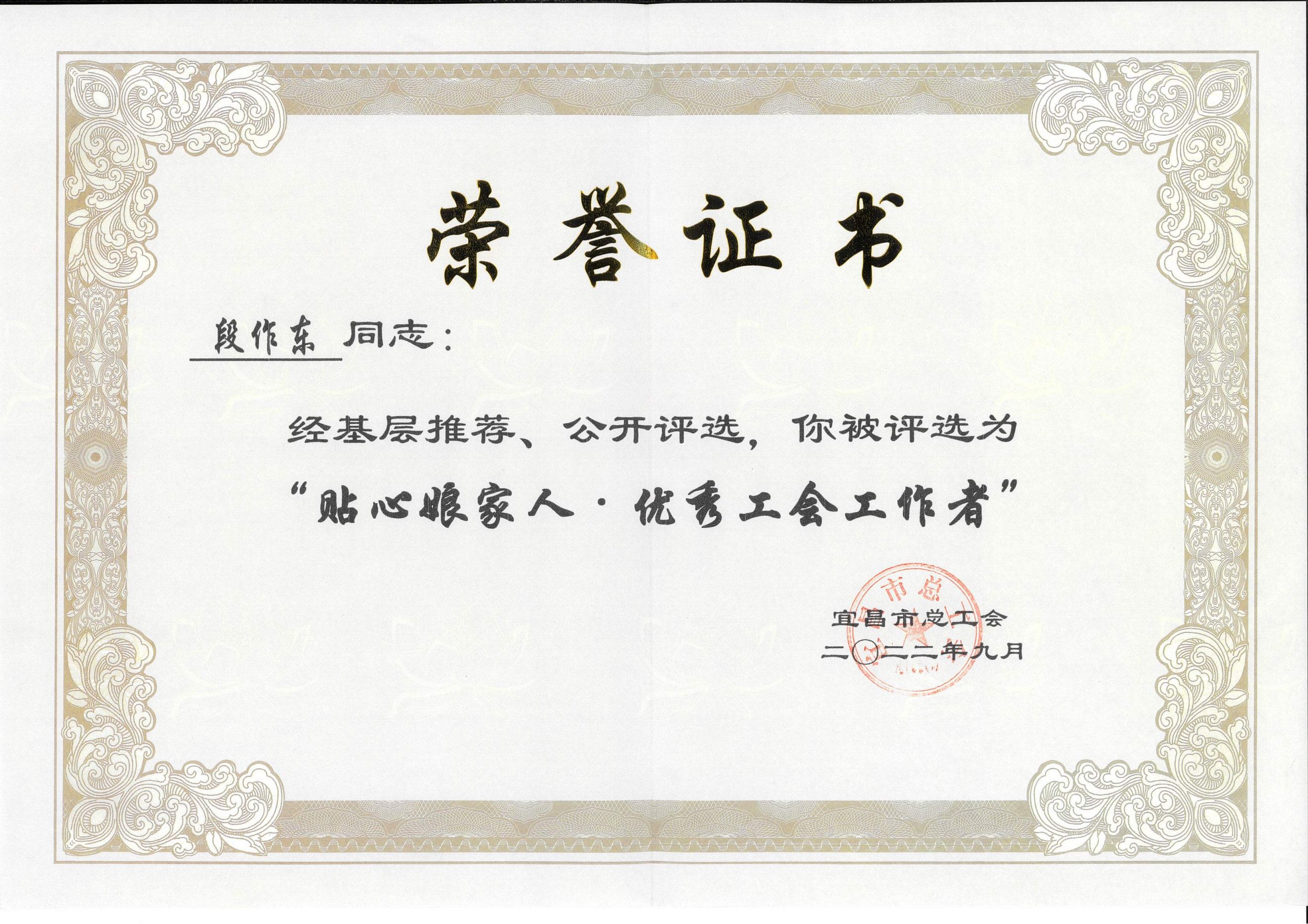 段作東同志被評(píng)為“貼心娘家人·優(yōu)秀工會(huì)工作者”