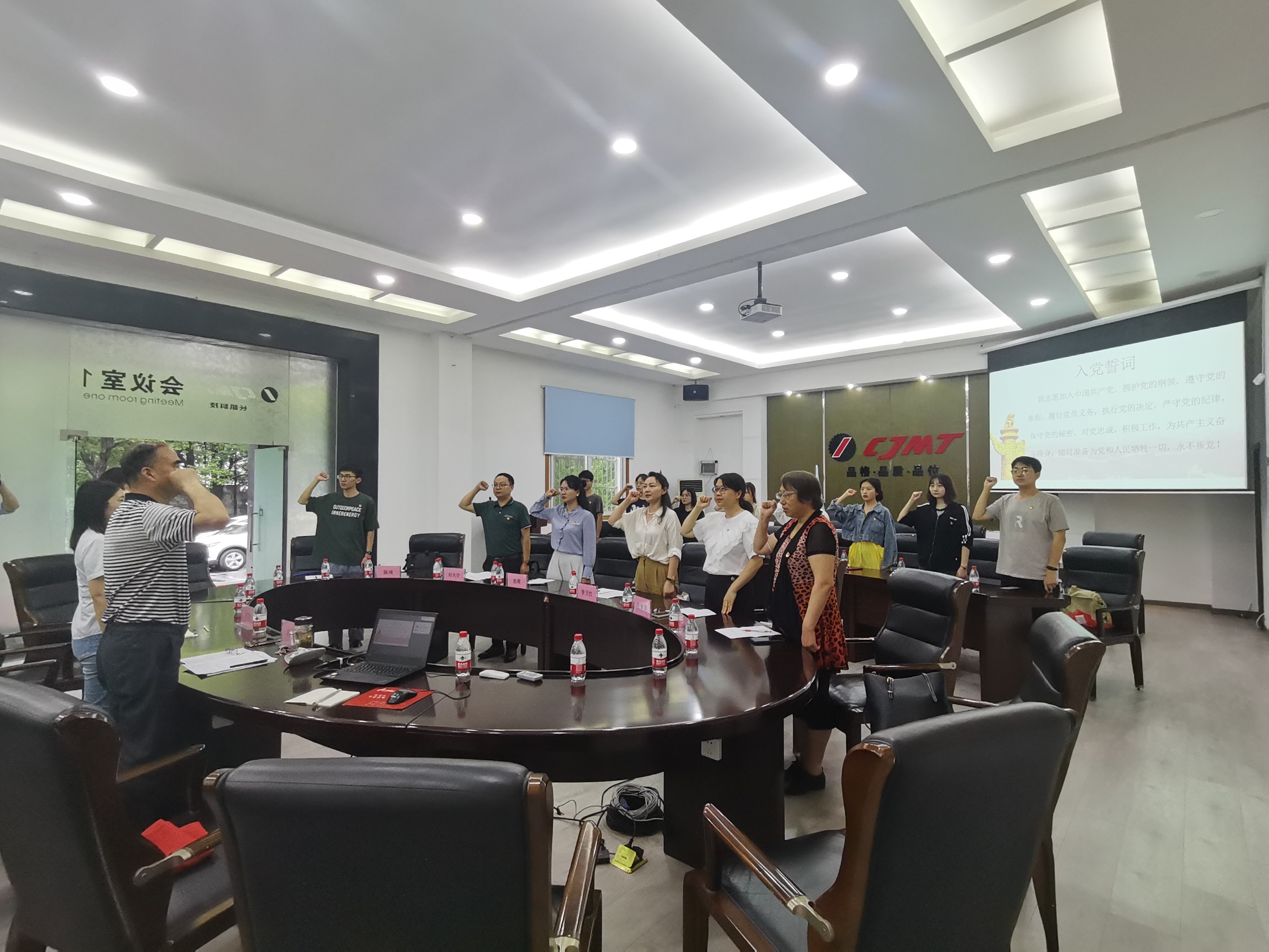 2023年6月16日下午,三峽大學(xué)外國(guó)語(yǔ)學(xué)院黨委書記李衛(wèi)紅、副書記郭維帶領(lǐng)學(xué)院師生代表,來(lái)公司開展“2023屆畢業(yè)生黨員專題黨日暨訪企拓崗”活動(dòng)。公司黨委書記段作東、研發(fā)中心總經(jīng)理盧宇、人力資源經(jīng)理?xiàng)盍釁⒓恿舜舜位顒?dòng)?;顒?dòng)開始,學(xué)生代表在人力資源經(jīng)理?xiàng)盍岬膸ьI(lǐng)下前往公司制造中心參觀,了解企業(yè)基本情況和企業(yè)文化。隨后一行人來(lái)到公司卓越樓會(huì)議室開展了主題黨日活動(dòng)。現(xiàn)場(chǎng)所有黨員用鏗鏘有力的聲音重溫了入黨誓詞,銘記入黨初心。