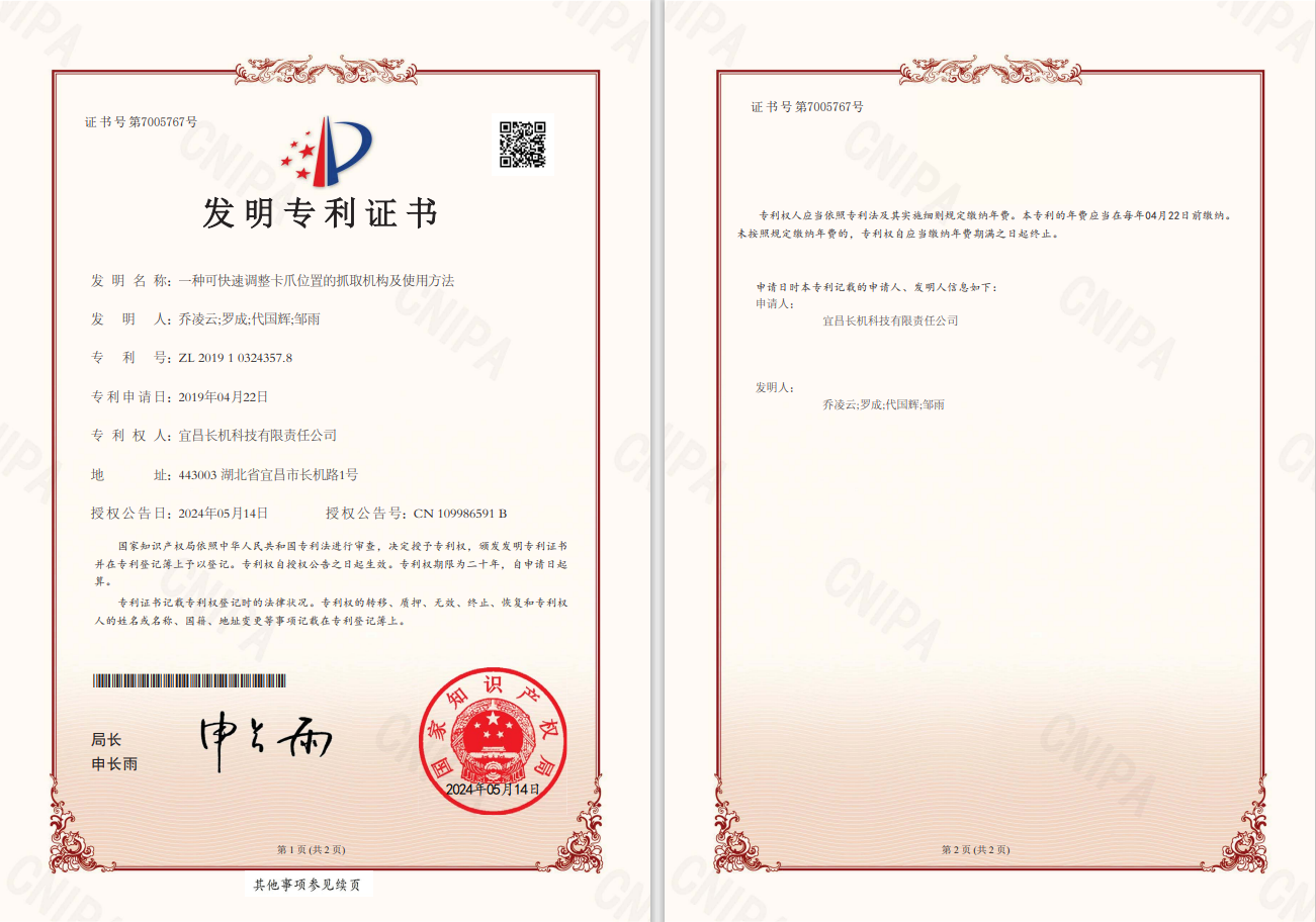 公司“一種可快速調(diào)整卡爪位置的抓取機構及適用方法”榮獲發(fā)明專利。