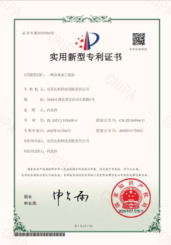 公司“一種齒條加工機床”、“用于運動機構(gòu)拉緊的快速連接結(jié)構(gòu)”獲得實用新型專利。