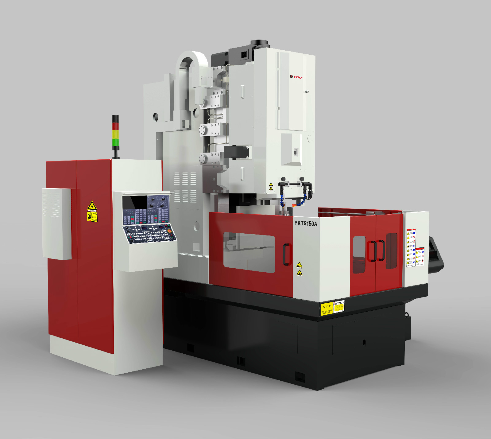 2.機(jī)床具備刀具提拉功能、工作臺(tái)采用滾動(dòng)軸承定心。主運(yùn)動(dòng)由交流變頻電機(jī)驅(qū)動(dòng),切削時(shí)通過交流伺服電機(jī)驅(qū)動(dòng)立柱移動(dòng)實(shí)現(xiàn)徑向進(jìn)給;因機(jī)床具備刀架提拉機(jī)構(gòu),特別適合加工深孔內(nèi)齒,同時(shí)大幅提升雙聯(lián)齒輪及不同齒厚的內(nèi)、外齒加工效率。可根據(jù)切削需要設(shè)置循環(huán)次數(shù)及每次循環(huán)的徑向切入量。